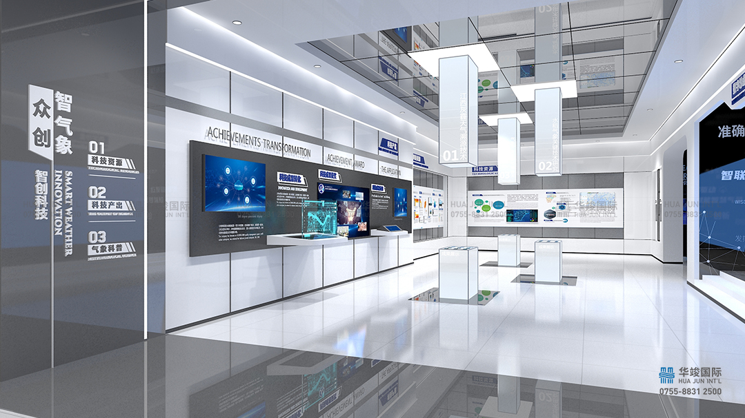 江西“智氣象”展廳項(xiàng)目由華竣國(guó)際執(zhí)行整體設(shè)計(jì)施工,華竣國(guó)際以創(chuàng)新的智慧科技展廳設(shè)計(jì)理念,融合互聯(lián)網(wǎng)+思維,順應(yīng)科技化趨勢(shì),結(jié)合互動(dòng)多媒體、數(shù)字影片、數(shù)字沙盤、虛擬現(xiàn)實(shí)等科技展項(xiàng),打造震撼視覺(jué)的高品質(zhì)科技展廳。