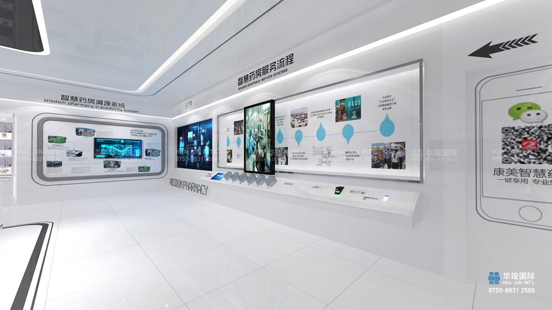 寶安康美智慧醫(yī)藥展館設(shè)計(jì)項(xiàng)目由華竣國際執(zhí)行整體設(shè)計(jì)施工,華竣數(shù)創(chuàng)擁有頂級(jí)展館設(shè)計(jì)團(tuán)隊(duì)和國際化的創(chuàng)新設(shè)計(jì)理念,融合互聯(lián)網(wǎng)+思維,順應(yīng)科技化趨勢,打造全新智慧多媒體展廳。