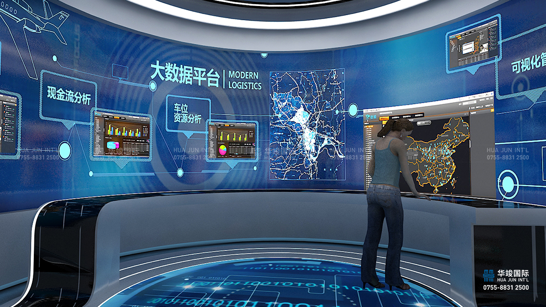 捷順科技·大數(shù)據(jù)智慧展廳設(shè)計項目由華竣數(shù)創(chuàng)執(zhí)行整體設(shè)計施工,華竣數(shù)創(chuàng)以創(chuàng)新的智慧展廳設(shè)計理念,融合互聯(lián)網(wǎng)+思維,順應(yīng)科技化趨勢,結(jié)合互動多媒體、數(shù)字影片、數(shù)字沙盤、虛擬現(xiàn)實等科技展項,打造震撼視覺的高品質(zhì)科技展廳。